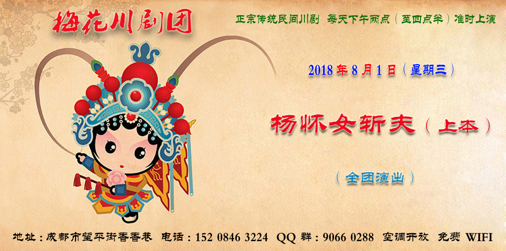 成都梅花川剧团8月1日演出信息