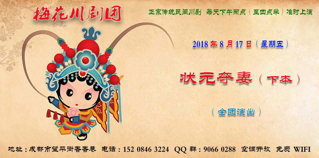 成都梅花川剧团8月17日演出信息