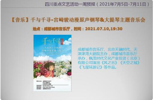 四川重点文艺活动一周预报(2021年7月5日-7月11日)