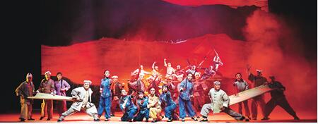 如果说优美的听觉享受能使观众安静地细细品味,那么,舞台呈现便是吸引观众愿意往下看的直接原因。这部戏的色彩基调是:黄、蓝、绿、红。茹子家和大壮家的院子、窑洞内外、山坡之上与两山之间,皆为陕北黄土高原的特色,厚重而拙朴、深沉而庄严;延水河畔茹子洗衣、与大壮第一次互诉衷肠,是在一片素雅而深藏底蕴的蓝色当中,看上去让人十分舒畅;茹子与乡亲们集合在庄稼地前时,他们身后是层层绿色,那么鲜嫩、那么激情四射地张扬着生命的活力;而当茹子和全村人痛下决心开镰割青苗时,一排又一排绿色渐变成了滴血似的红色,庄稼在流血!石爷爷一句喊“土地爷呀,为了穷苦百姓,为了天下太平,我们要割青苗了,得罪你老了!”让人感觉到这些最纯朴的农民,他们的心在流血……这些色彩已经与剧情有机结合在一起,无声却有力地传达着导演和舞美设计的匠心独运。舞台调度充满强烈的对比,队伍开拔、激烈战斗、民众支前、痛割青苗等人物众多的宏大场面与茹子一人独坐窗前、河边洗衣、二人对唱、隔山成亲等舒缓柔和的场景铺排得当,张弛有度,使整个剧场自始至终沉浸在热烈而温润的艺术氛围中。