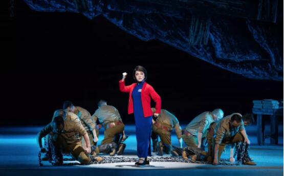在音乐设计中,《江姐》采用了最具川剧特色的高腔作为全剧音乐的主体,又配以小型民族管弦乐为伴奏,保留了川剧高腔“帮、打、唱”的特点;在人物设计上,他们虚实结合,意象化地呈现江姐见伞如见彭松涛的场景;在舞台设计上,“绣红旗”一幕中,他们又将整个舞台作为一面巨大的红旗,通过演员舞动黄绸带来回穿插,最终形成一个五角星,写意又大气。