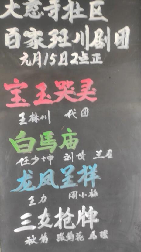 演出剧目:《宝玉哭灵》《白马庙》《龙凤呈祥》《三女抢牌》