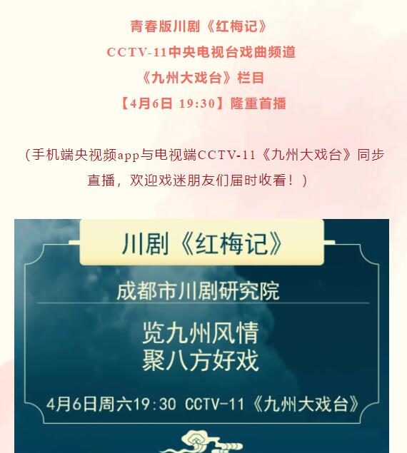 青春版川剧《红梅记》4月6日在CCTV-11首播