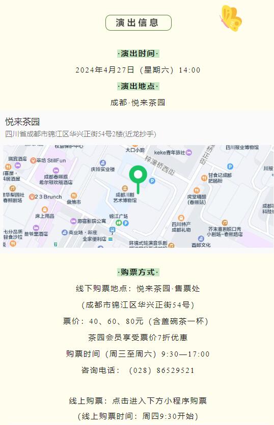 成都悦来茶园4月27日(星期六)川剧折子戏演出