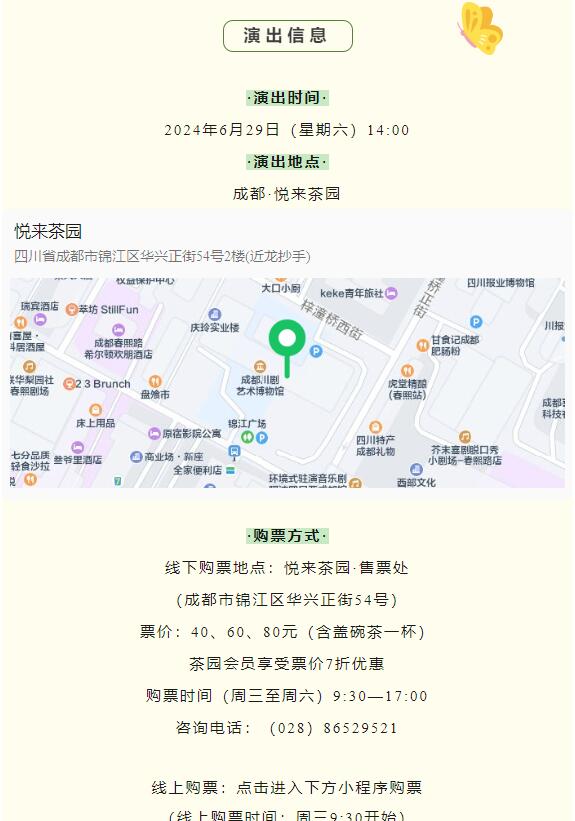 成都悦来茶园6月29日(星期六)川剧折子戏演出