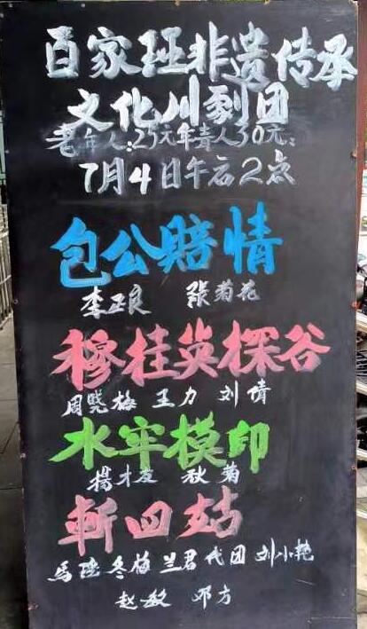演出剧目:《包公赔情》《穆桂英探谷》《水牢摸印》《斩四姑》