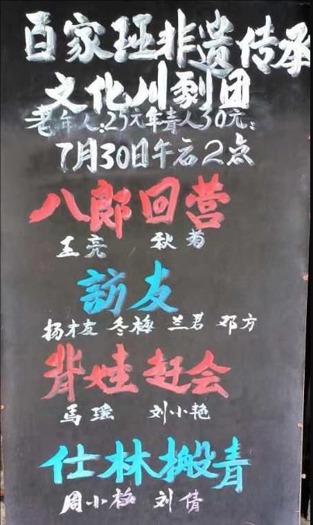 演出剧目:《八郎回营》《访友》《背娃赶会》《仕林搬青》
