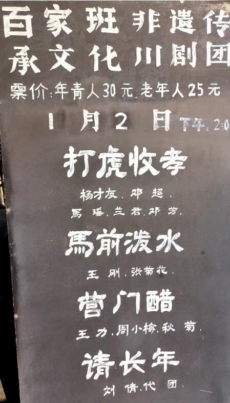 演出剧目:《打虎收孝》《马前泼水》《营门醋》《请长年》