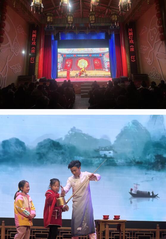 2月1日下午,位于绵阳市涪城区“绵州记忆”特色街区的铁牛广场戏台上正表演着川剧《皮金滚灯》,台下观众掌声不断、叫好连连,新春氛围在锣鼓声中更加浓厚。