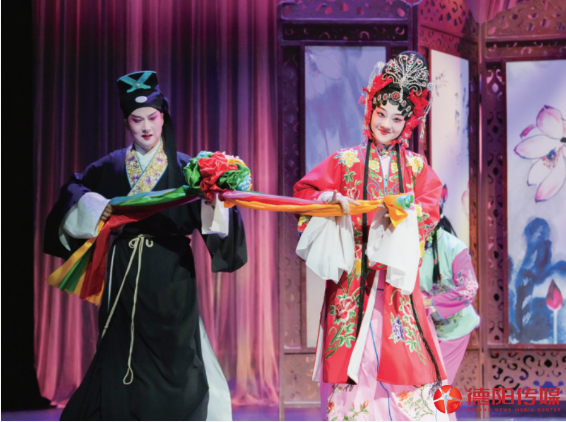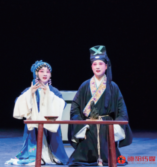 锣鼓一响,粉墨登场,水袖轻舞,飘逸如画。8月25日晚,德阳市艺术宫响起阵阵热烈掌声,时而激越时而婉转的川剧高腔,让台下的川剧迷们如痴如醉。两位梅花奖得主肖德美(本名肖得美)、虞佳扮相俊美,唱念做打,功底深厚;德阳本土川剧演员生旦净末丑悉数上场,表现亮眼;音乐、唱腔、舞台布景皆让人耳目一新。