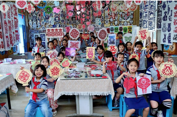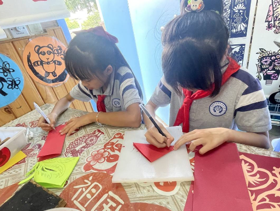 学生们在剪纸