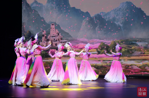 《春之茶》《夏之歌》《秋之果》《冬之礼》四个篇章轮番登场,情景表演《羌山绣娘》、情歌演唱《莎朗姐》、婚俗展示《尔玛婚礼》、羌族酒歌《西惹木》……一个个精彩的羌族文化特色节目接连上演,大家仿佛置身云朵上的羌寨,在充满羌族特色的吟唱与舞动中,感受羌族人一年四季原生态生活。身着绣满羌绣的服饰的姑娘们还走下舞台,为观众递上羌茶、羌酒和羌红,让大家不仅大饱眼福,更饱口福。